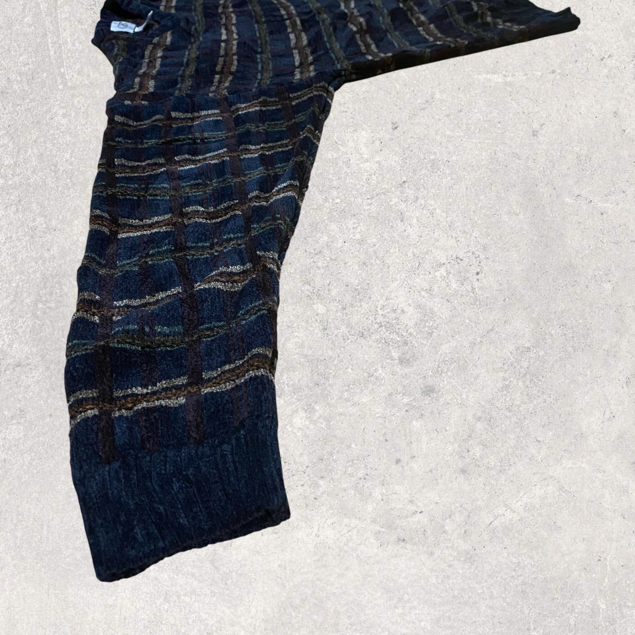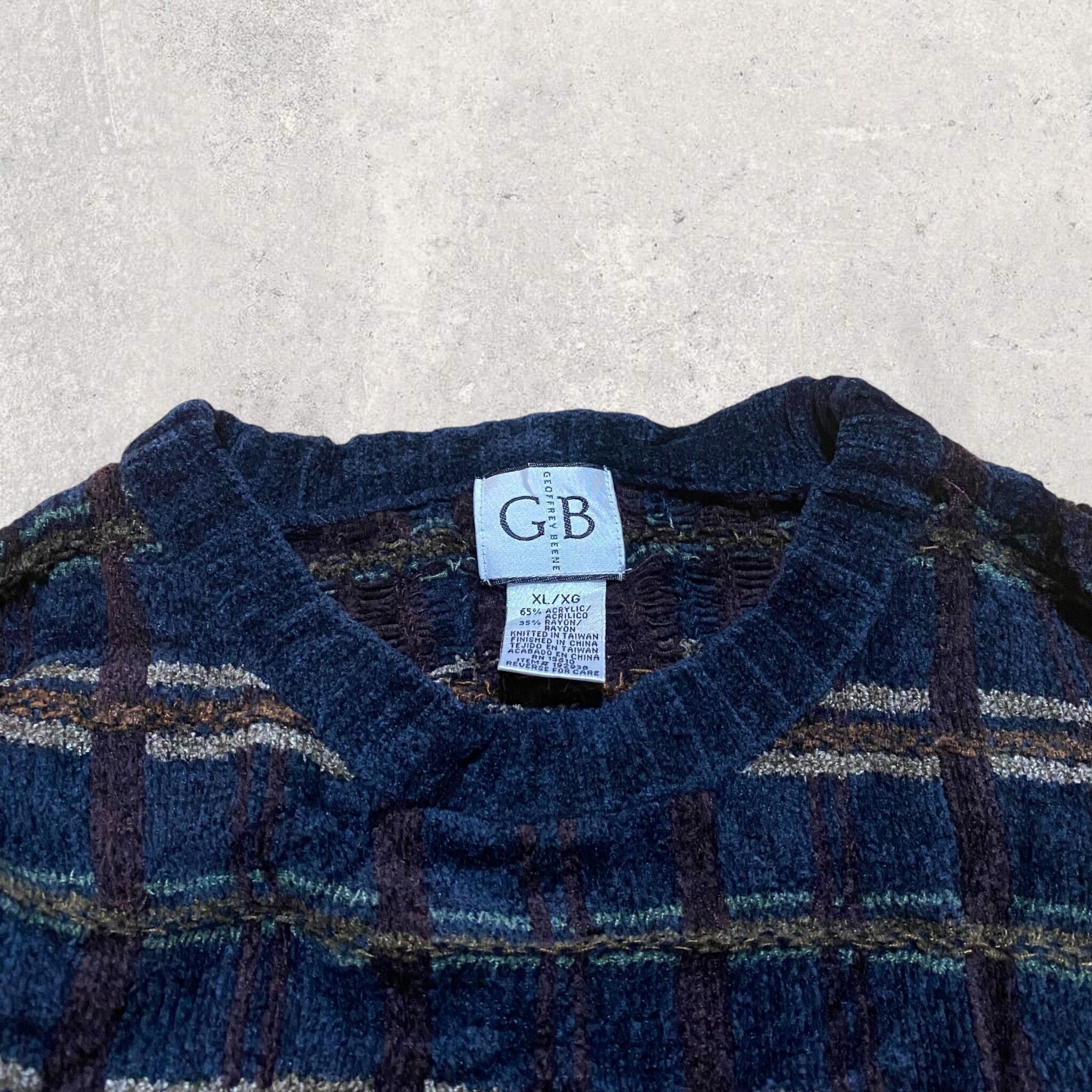 【90s】ヴィンテージ アクリル×レーヨン ニット セーター 総柄 チェック 古着 ビンテージ XL ビッグサイズ used vintage old knit sweater 80s 70s 60s