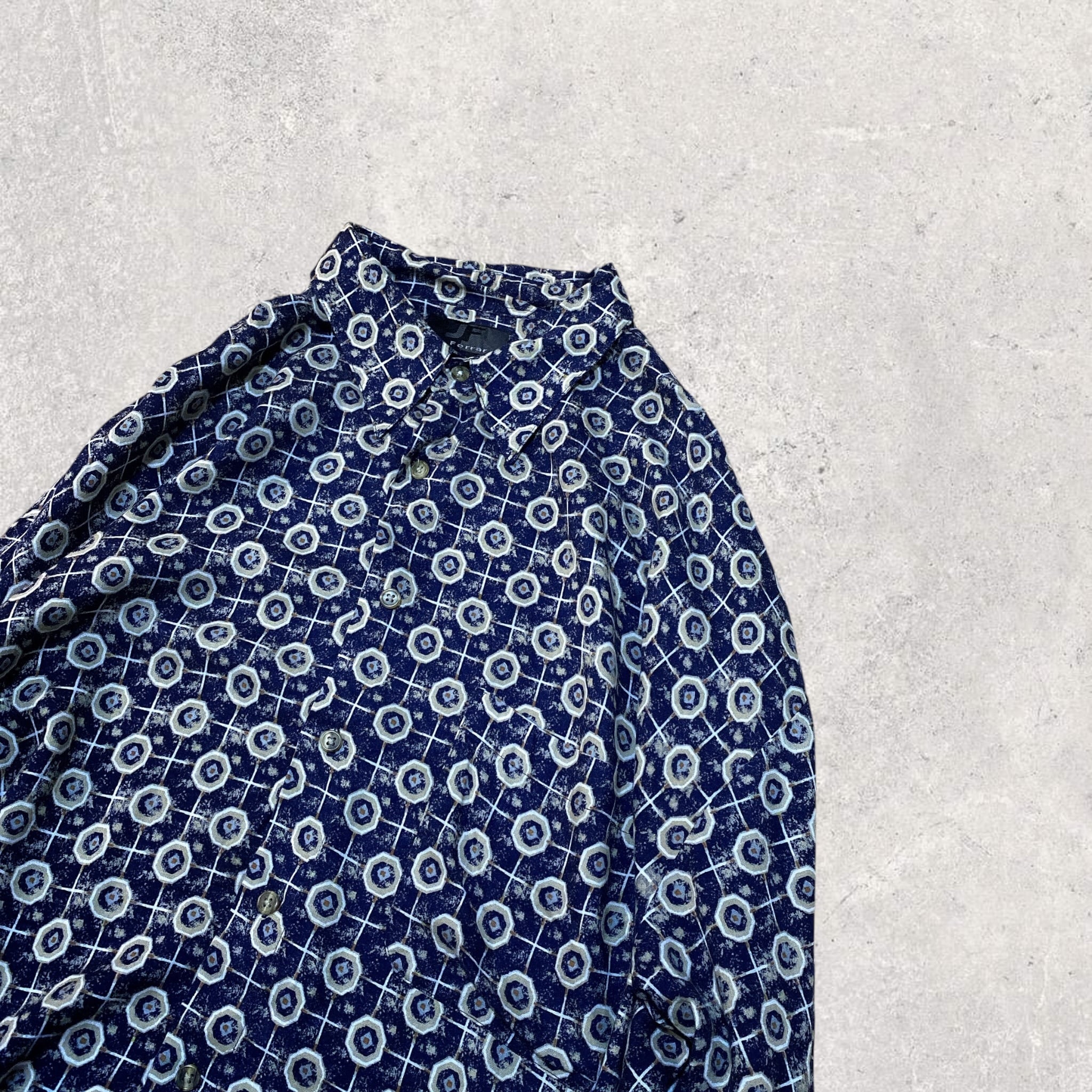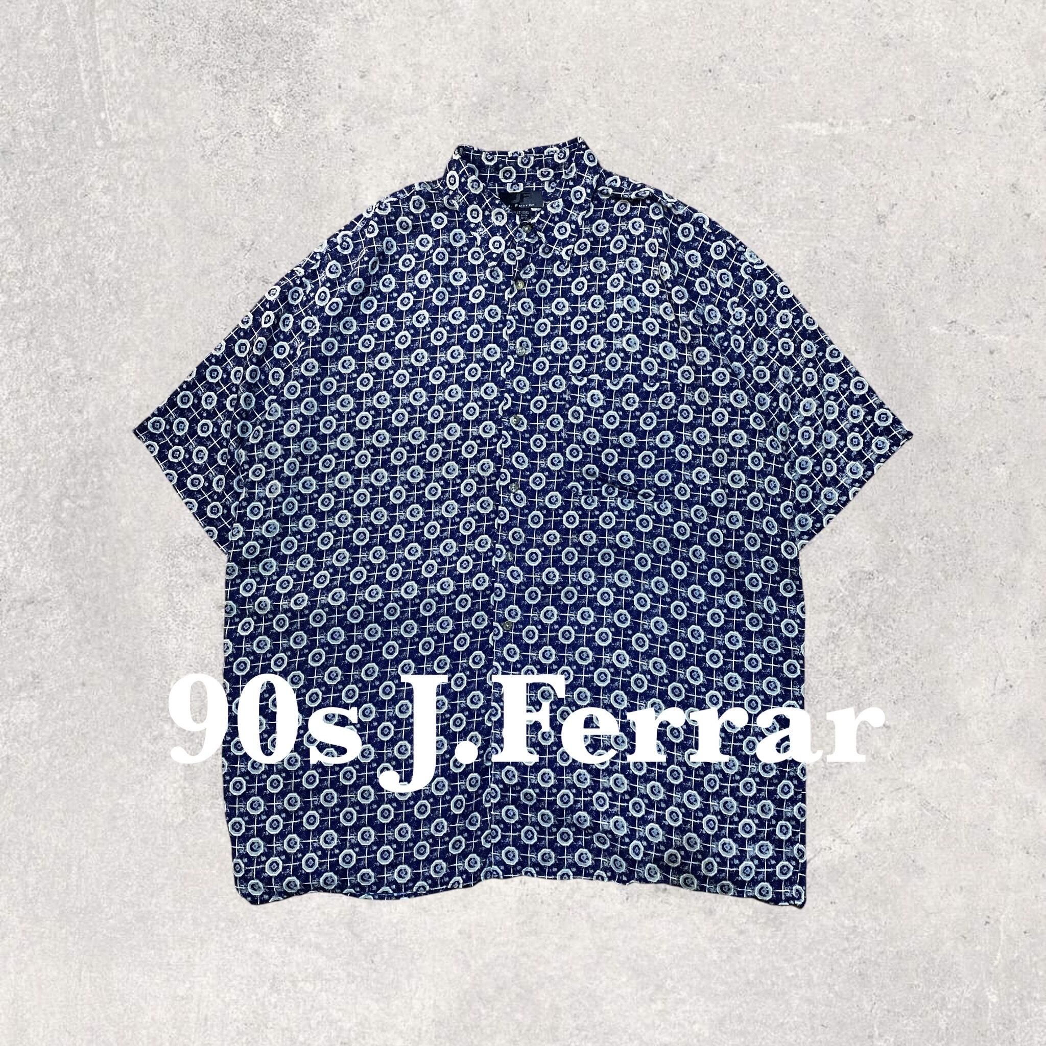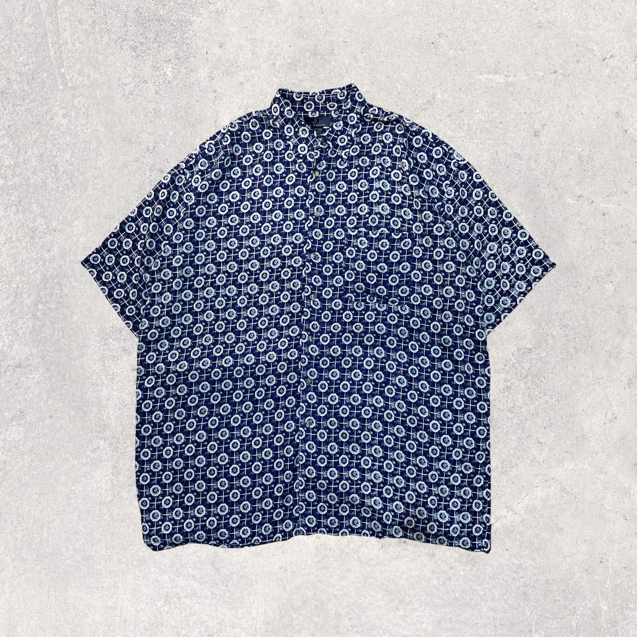【90s】" J. Ferrar " 総柄 100% レーヨン シャツ 古着 ビンテージ ヴィンテージ 半袖 幾何学模様 used vintage old pattern shirt 80s 70s 60s