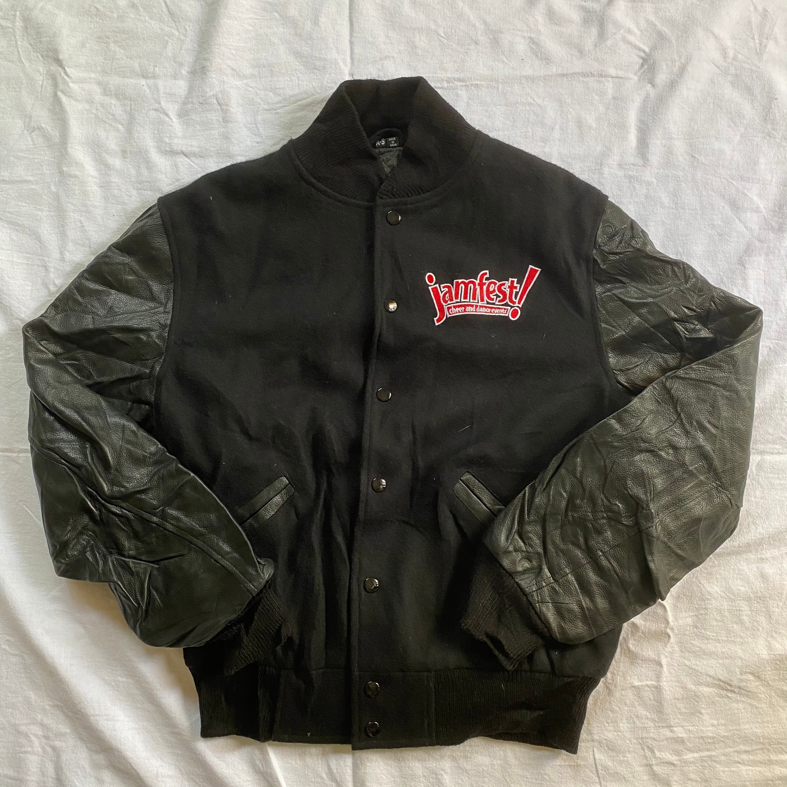 90s スタジャン US古着 ヴィンテージ ブラック × ブラック レザー スタジアムジャンパー used vintage old ビンテージ 希少 80s 70s 60s