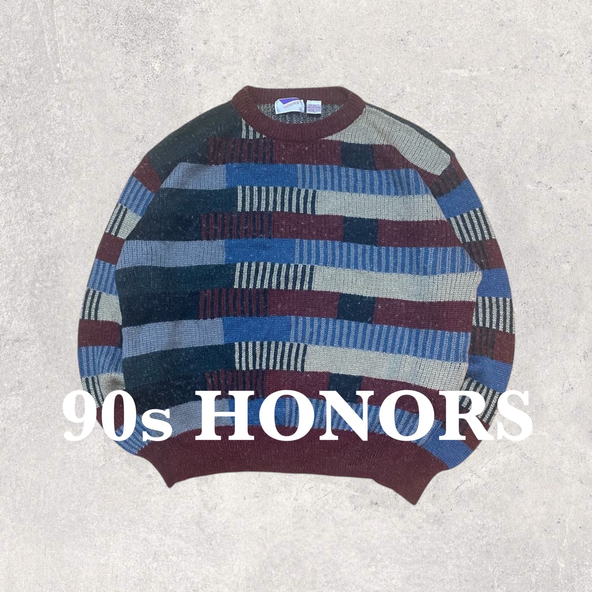 【90s】" HONORS " 総柄 ニット セーター 古着 ビンテージ XL used vintage old knit sweater 80s 70s 60s